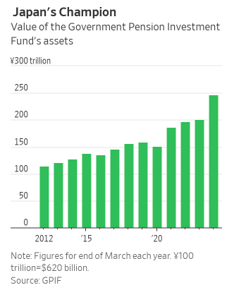 数据显示,截至3月31日,GPIF拥有约246万亿日元(约合1.53万亿美元)的资产。这些总资产的一半目前被配置在外国股票和债券中——主要是美元资产。