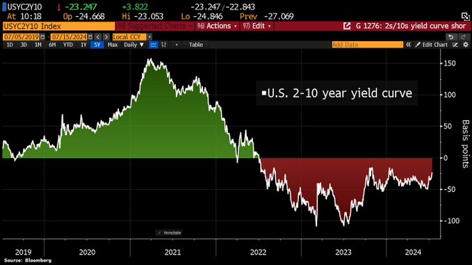 而曲线“趋陡”下的第一步,无疑便是有望结束过去两年美债收益率历史性的倒挂状况。