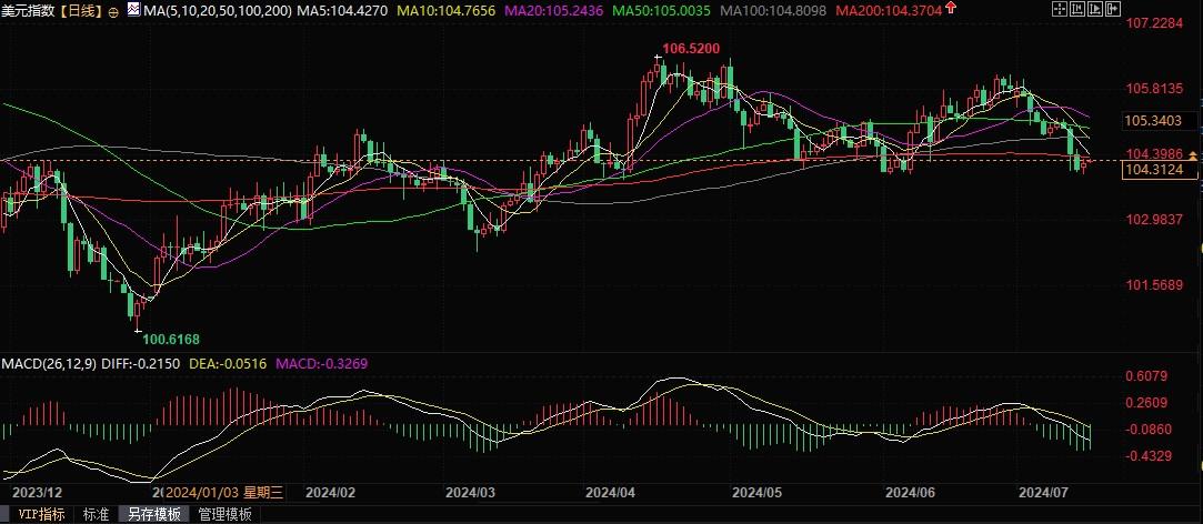 美元指数日线图北京时间7月16日9:01,美元指数报104.32