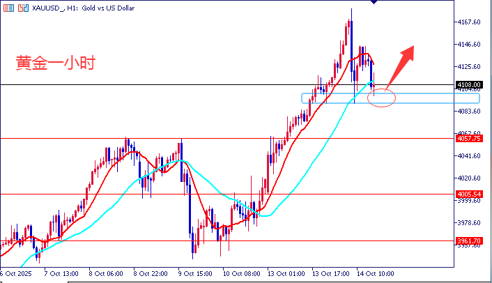 黄金4100上多,止损4090,目标4160-4180