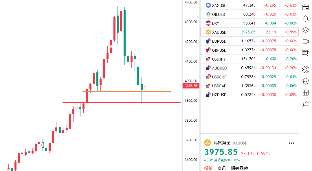 黄金早盘在3968/66附近多,防守3959,目标上看3990/4000关口,站稳4000看4030/40