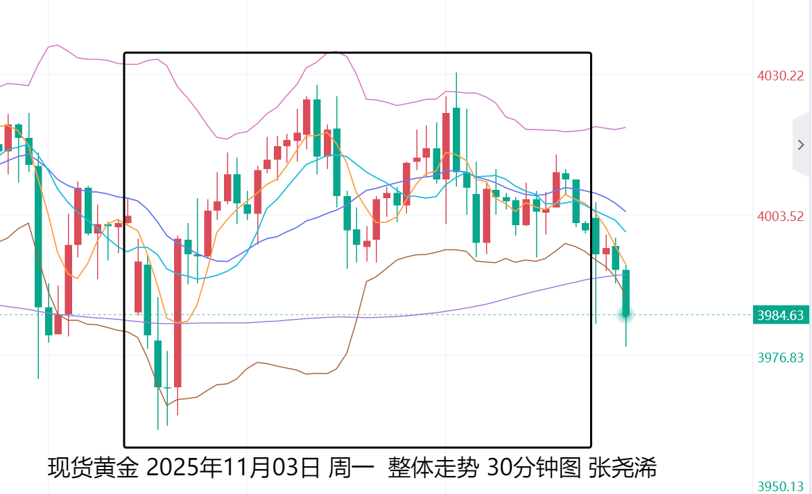 日内将无可重点公布的数据,当下走势也有所观望而震荡走盘,可继续等待本周晚些时候即将发布的美国ADP民间部门就业数据和ISM采购经理人指数(PMI),市场预期整体将好于前值,而会利空金价,反之如不及预期,将会利好金价反弹。但在美国政府停摆结束前和非农数据公布前,走势仍震荡波动为主。等待停摆结束后的落地抛压进一步走低触及60日均线看利空出尽待反弹攀升。