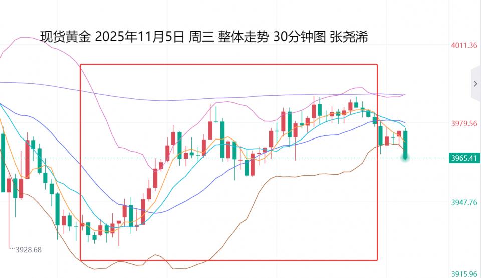 上交易日周三(11月5日):国际黄金止跌回升收涨,虽仍处于中轨及30日均线下方,但持续缩减的附图指标空头信号,和近期的筑底震荡走势来看,下方空间有限,激进者可先逢低入场,稳健者可待再跳水一波,或者是重回中轨上方后再入场即可。