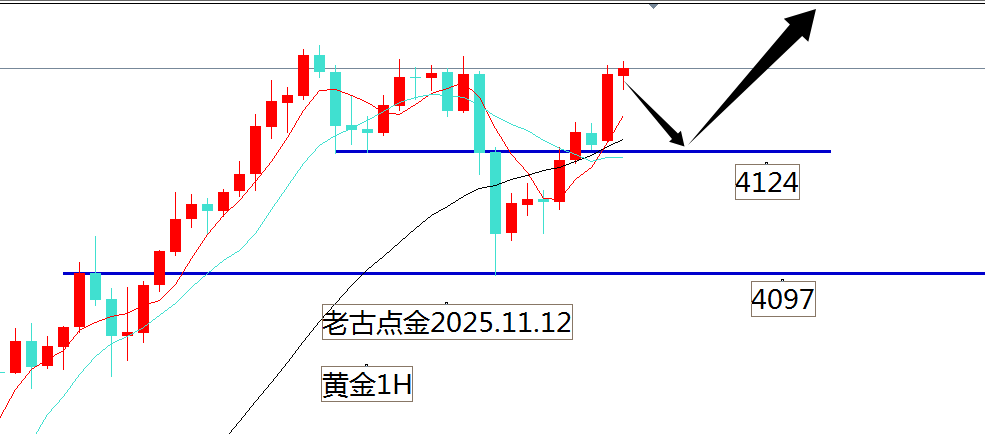 小时是V字形态,今天我们将依托4124这个支撑去布局多单,另外日线的均线强支撑已经上到了4071,形态上看不破昨天晚上低点基本不用改变多头思路,白盘大家关注4124-4130这个支撑带的机会,这个只是小支撑,强支撑还是在4100附近,如果破了昨天的高点4149也是可以考虑追,不过大家注意4161是一个大的压力。