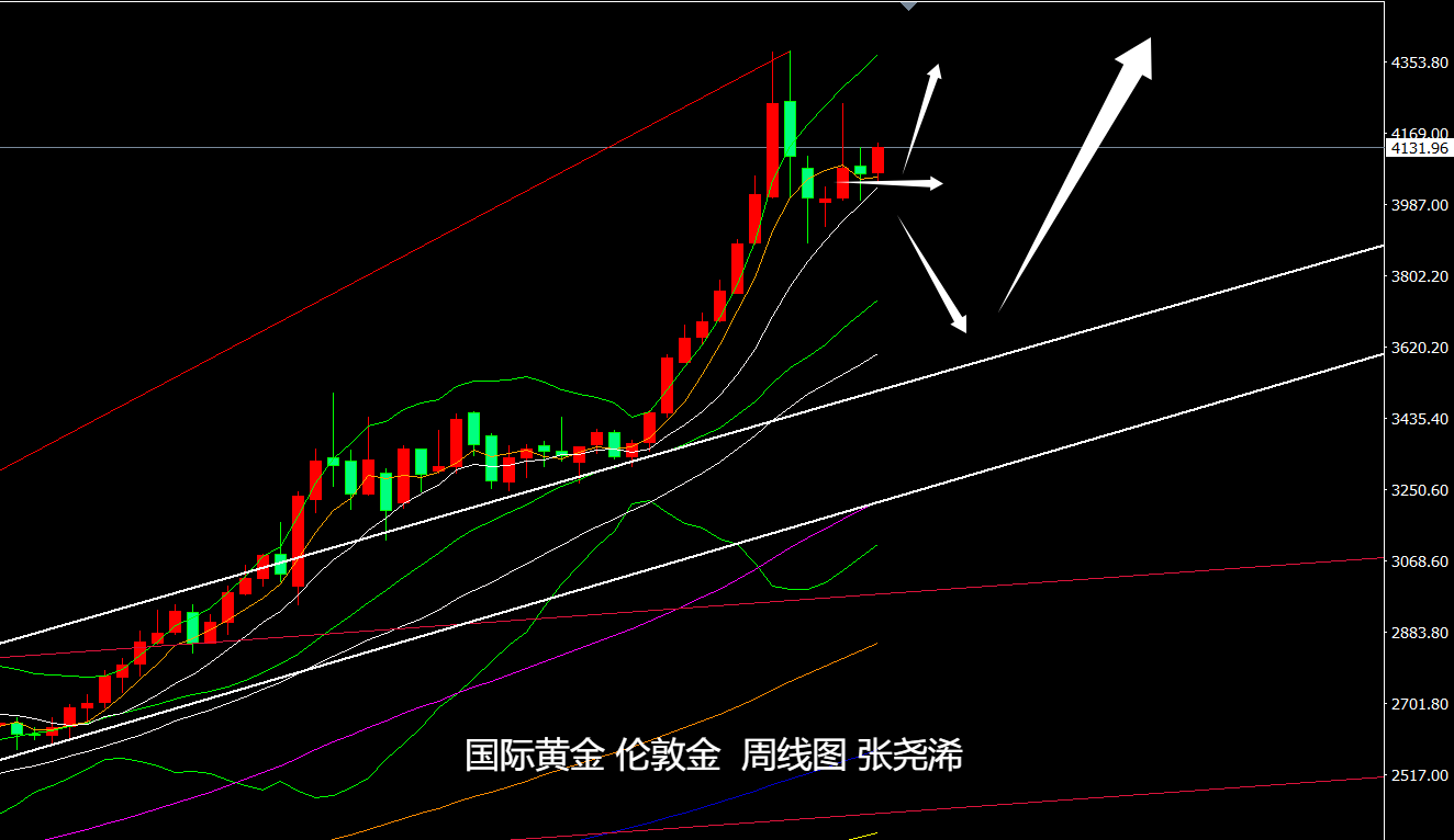 本周则据此预期反弹走强,验证观点有效,目前此预期信号也进一步加强,短期有望继续反弹冲击4300美元关口,下方则保持在10周均线支撑上方低多看涨。