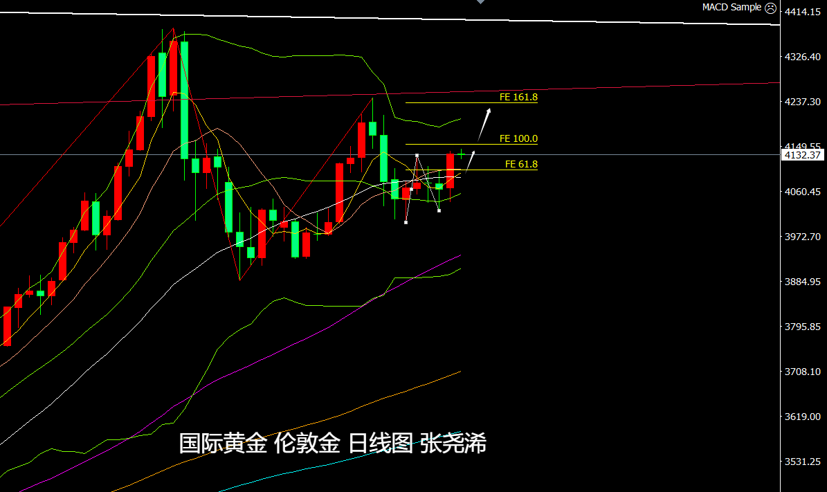 日图;金价近期在中轨支撑上方持续震荡调整后,多头动力转强,走势反弹至30日及短期均线上方,多头占据优势,布林带也开口向上延伸,下方则关注短期均线及中轨线支撑继续看涨为主,上方等待再度上探4260美元或4380美元目标。