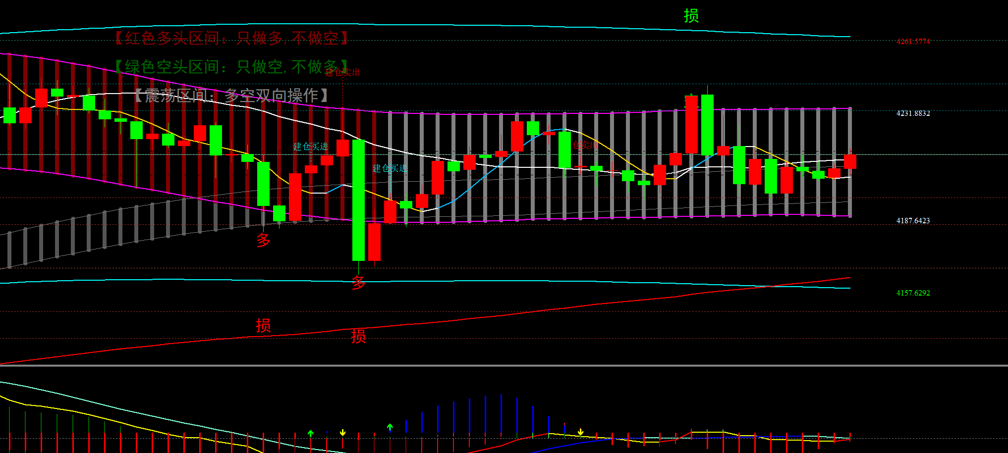 昨天黄金整体还是宽幅震荡,虽然破了4235两次冲40以上,但是两次都出现了空头的高度压制大幅下跌,下边也没有破底,所以还是按震荡来对待,现在上方压制日图与小时图形成共振重叠压制在4232这里,四小时跨度又太大,只有突破以后看下方4166,上方4260-80,所以这个暂时参考意义不大,而30分钟在26附近,下方支撑还是在94-84-66,目前早盘探底回升收复中轴这里,到九点如果收起来可以先考虑短多,所以对于今天卡点操作即可。