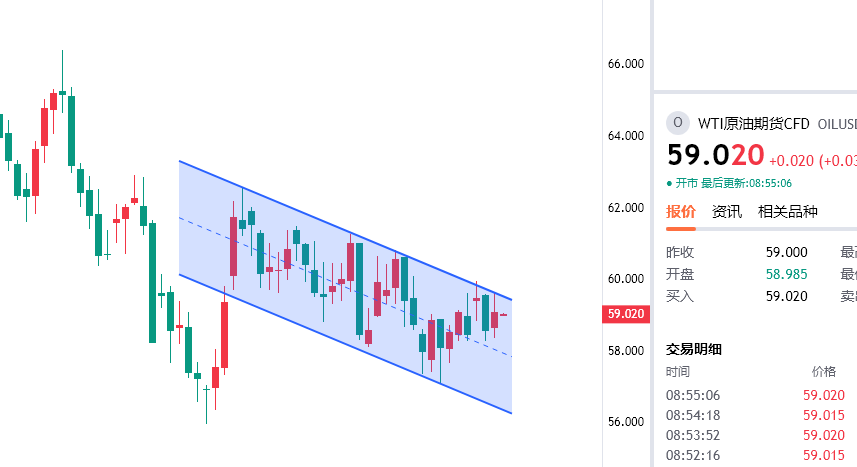 原油反弹59.4/5一线空,防守60.2,目标看58/57一线