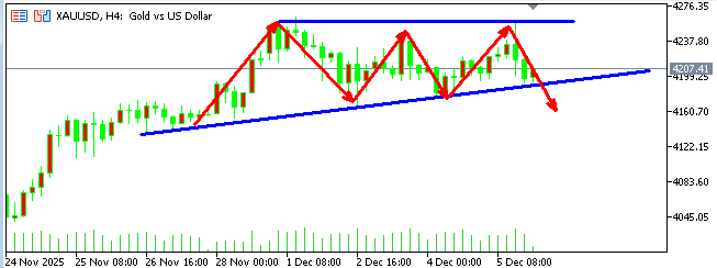周五黄金直接跳水,直接快速回落60美金,一度击穿4200一线,最低来到4190下方,这种走势来个措手不及了,而且四小时线保持乌云盖顶的节奏,大阴线实体直接覆盖阳线,k线从50均线上方开始发力,直接击穿支撑