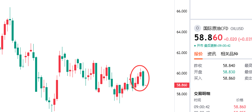 原油反弹59.5附近空,防守60.3,目标看58/57一线