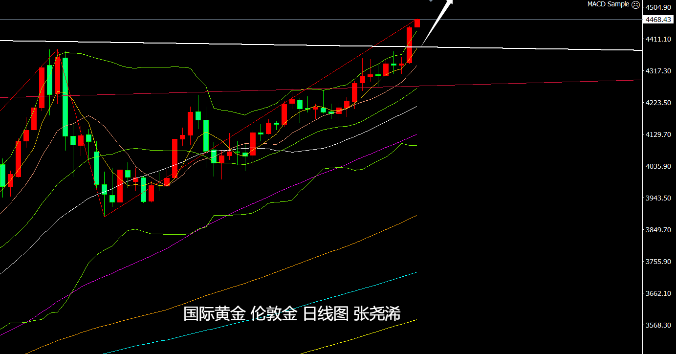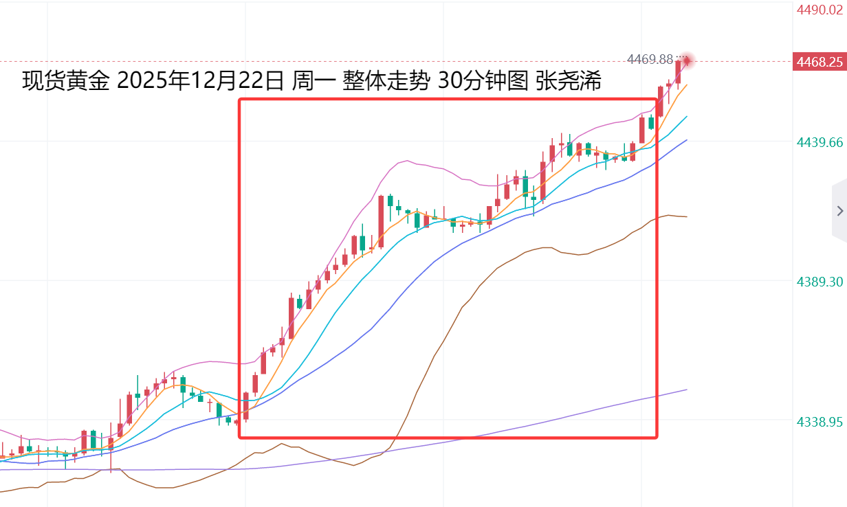 上交易日周一(12月22日):国际黄金强势反弹攀升收阳,如期突破新高以及趋势线阻力压制,这暗示后市的看涨空间进一步打开,将迎接看涨至5000美元关口甚至更高的预期位置。