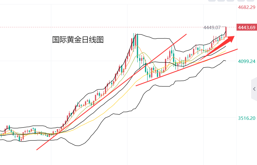 从之后的走势看,昨日周一亚盘开盘后,黄金直接上涨,很快突破历史高点4381美元,并在之后继续上涨,不断创造新的历史高点,最终在收盘前,刷新历史新高至4449美元。黄金延续了11月止跌企稳以来的上升趋势,单日上涨超过100美元,突破最近一周历史高点对金价的压制,短期表现比我们预期的更加强劲。