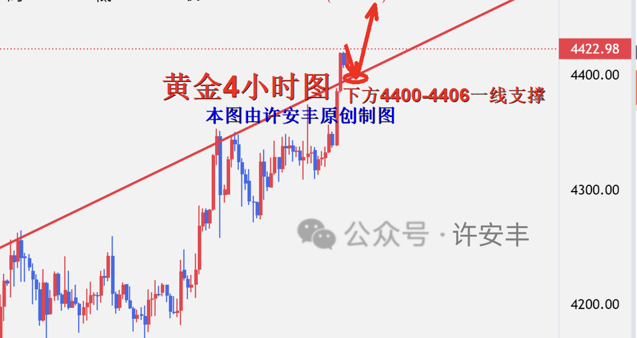 方案一:金价4400-4406区间干多,回撤4390附近加仓多,损点4383位置,方向看4435-4440区间内。
